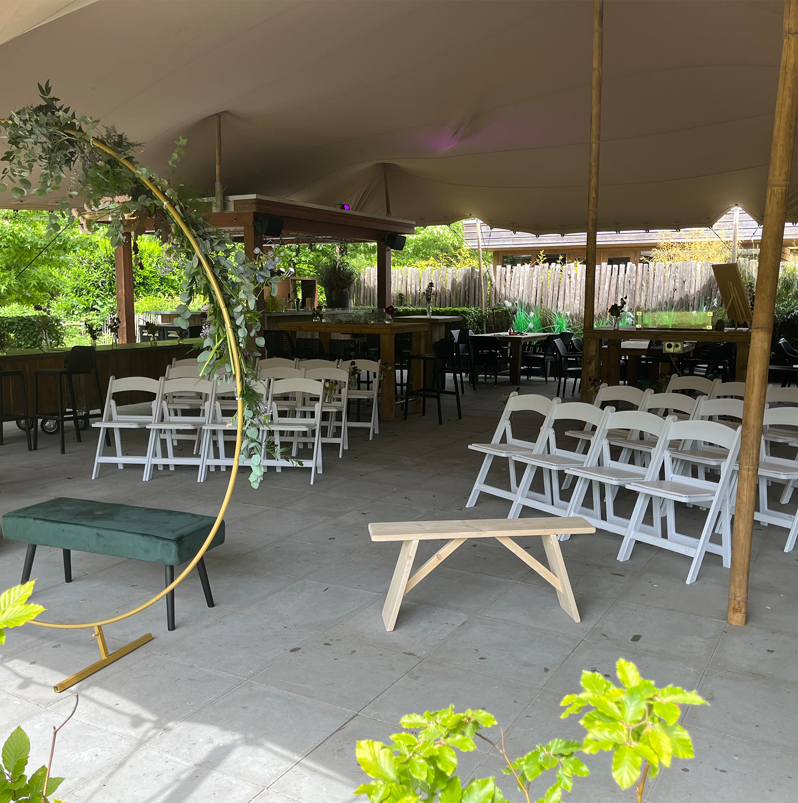 Wordt het borrelen op ons gezellige buitenterras, of kies je liever voor de beschutting van de comfortabele bedoeïenentent? Binnen en buiten kan natuurlijk ook in elkaar overlopen. De brasserie is een heerlijke plek voor een feestelijke receptie en dan hebben we natuurlijk ook nog de twee zalen – de sfeervolle Rozenvenzaal en de stijlvolle Heidepoortzaal – die we passend bij de gelegenheid naar wens inrichten.
